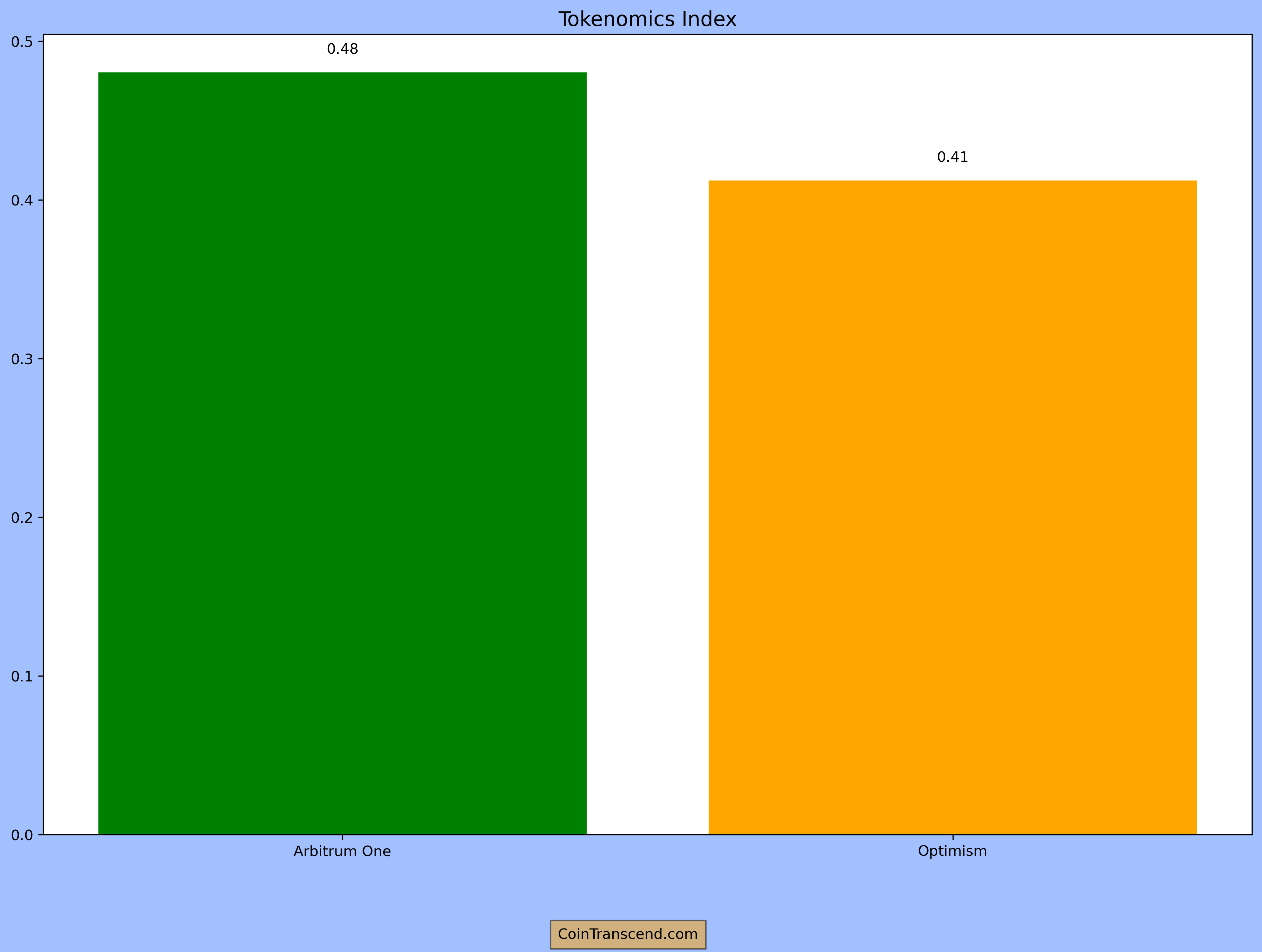 Tokenomics Index: Arbitrum has a higher Tokenomics index than Optimism. This indicates a more favorable economic structure for the token, considering factors such as token distribution, utility, and market perception.