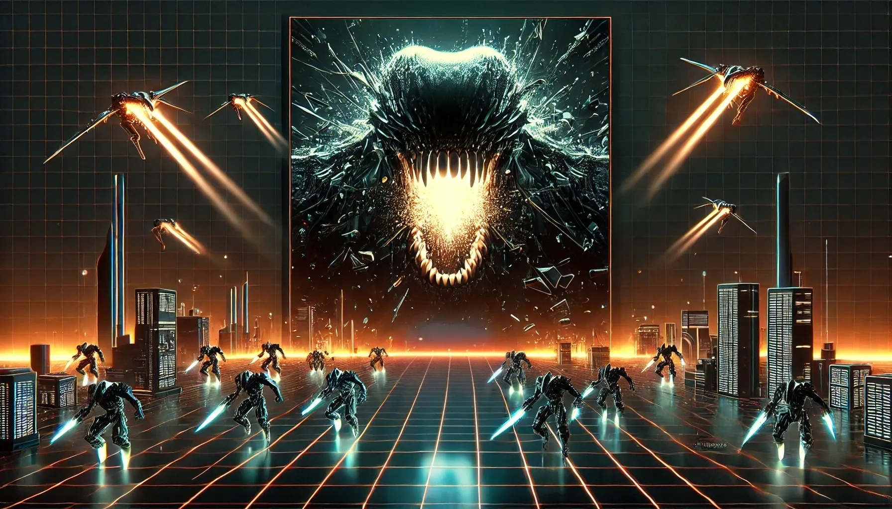 Alpha Sentinel and the strike team pressed their attack, their combined firepower overwhelming the wounded Devourer. With a final, desperate cry, the entity disintegrated into a shower of digital sparks.
